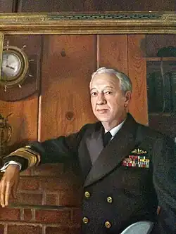 After his promotion to LTJG, he was ordered to the USS O-9 (SS-70) as the submarine's Executive Officer until her decommissioning on June 25, 1931. His next assignment was at the United States Naval Academy, where he was an English and History instructor.[5] While there, he received a Letter of Commendation from the Commandant of the academy for the many hours he volunteered to the academy's athletic department as a football and boxing coach. After his tour of duty at the academy, he was assigned to the USS Saratoga (CV-3) as the carrier's boiler division officer, ship's secretary to the Captain, and other duties. While serving on Saratoga, he was promoted to the rank of lieutenant on March 13, 1934.[6] He received a Letter of Commendation later that year from Commander Aircraft Battle Forces Atlantic Fleet for navigating the Saratoga through the Straits of Florida at high speeds in heavy weather and darkened ship conditions during Fleet exercises.[7] He remained on Saratoga for another 2 years until he was ordered to the Hydrographers Office in Baltimore, Maryland, on April 8, 1936, as the Commanding Officer of that office.[8] He served as Commanding Officer there until March 5, 1938, when he was sent to the USS Mississippi (BB-41),[9] where he served as the ships 1st Lieutenant and damage control officer.