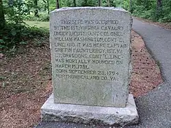 William Washington (February 28, 1752 – March 6, 1810) was a cavalry officer of the Virginia militia and Continental Army during the American Revolutionary War, who also served on General George Washington's staff during the naval war with France in 1798 and held a final rank of brigadier general. Primarily known as a commander of light dragoons, he led mounted troops in a number of notable battles in the Carolinas during the campaigns of 1780 and 1781.[1] Following the conflict, this William Washington moved to South Carolina, where he married and served in the state legislature as well as led the Seventh Brigade of the South Carolina militia.[2] Cavalry Commander William Washington of Stafford County and South Carolina has often been confused with his distant cousin William Augustine Washington, also a Revolutionary War patriot and planter, who served as a delegate representing Westmoreland County, Virginia.