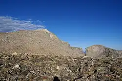 Wind River Peak (13,197 feet (4,022 m)) is the highest point in the southern end of the Wind River Range that is located in the U.S. state of Wyoming. The peak straddles the Continental Divide and is surrounded by National Forest lands.[3] The west slopes are in the Bridger Wilderness of Bridger-Teton National Forest, while the east side is in the Popo Agie Wilderness of Shoshone National Forest. In a cirque on the northeast slopes of the peak lies Wind River Glacier.[3]