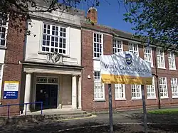 Wirral Grammar School for Boys is an 11–18 boys maintained selective grammar school founded in 1931. It is situated on a 9.1 acres (3.7 ha) site to the west of Port Sunlight at Cross Lane, Bebington, on the Wirral Peninsula in England. Academically successful, the school was placed 42nd in the top 100 in the Daily Telegraph A-Level table in 2015[4] and 145th in the DfE GCSE table in the same year,[5] but has not been inspected since its conversion to academy status.