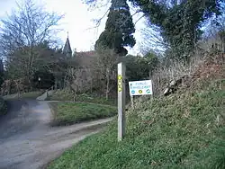 William Shakespeare is said to have joined a party of Stratford folk which set itself to outdrink a drinking club at Bidford-on-Avon, and as a result of his labours in that regard to have fallen asleep under the crab tree of which a descendant is still called Shakespeare's tree. When morning dawned, his friends wished to renew the encounter but he wisely said "No, I have drunk with "Piping Pebworth, Dancing Marston, Haunted Hillboro', Hungry Grafton, Dodging Exhall, Papist Wixford, Beggarly Broom and Drunken Bidford" and so, presumably, I will drink no more. The story is said to date from the 17th century, but of its truth or of any connection of the story or the verse to Shakespeare there is no evidence.[5] The reasons for the village being described as papist remain unclear, but may be a reference to the Catholic Throckmorton family. In 1541, the village passed to Sir George Throckmorton, in whose family it remained until 1919, when the estate was sold and the manorial rights extinguished.[6]