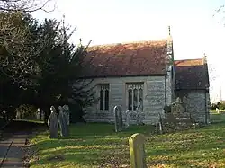 The parish church is dedicated to St. Milburga of Wenlock and was founded in the 12th century. The Domesday Book makes no mention of a priest at Wixford. The dedication of the church to the Saxon St. Milburg seems to be evidence of its antiquity, but not necessarily of a pre-Conquest foundation, for the cult of St. Milburg was revived, after long neglect, by the translation of her relics at Wenlock Priory in 1101.[6] The church comprises a nave and chancel under one roof, south chantry chapel, south porch, and bell turret. There is one ancient, uninscribed bell, and another by John Martin of Worcester, dated. The bell was recast in 1937, retaining the old inscription.[7] The church was restored in 1881 and the south porch and the western bell turret probably date from then.[6]