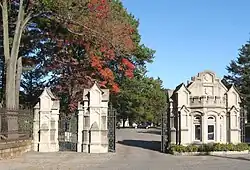 Woodlawn Cemetery is one of the largest cemeteries in New York City and a designated National Historic Landmark. Located south of Woodlawn Heights, Bronx, New York City,[1] it has the character of a rural cemetery. Woodlawn Cemetery opened during the Civil War in 1863,[2] in what was then Yonkers, in an area that was annexed to New York City in 1874.[3] It is notable in part as the final resting place of some well-known figures.