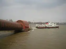 Woodside is one of two Wirral terminals for the Mersey Ferry to the Pier Head in Liverpool. This terminal underwent a programme of extensive refurbishment in 1985. When reopened on 13 March 1986,[4] the restoration of the historic booking hall had been completed and the large, dilapidated Victorian landing stage replaced. In 2024, the landing stage and linkspan bridge was removed for another replacement.[27]