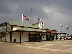 A wooden construction on brick foundations, the 1864 booking hall is a listed building. It remained virtually unaltered until it was extensively refurbished from 1985 in the existing style, with many of the original timbers being replaced.[2]
