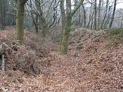 Wooston Castle is an Iron Age Hill fort situated on the edge of a hill overlooking the Teign Valley in Devon some 200 metres (660 ft) above sea level, only 3 kilometres (1.9 mi) south and east of Prestonbury Castle and 5 kilometres (3.1 mi) east of Cranbrook Castle.[1]