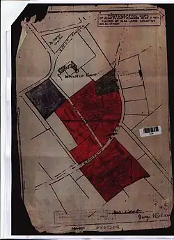 Locals presumed the house to be named "Worcester Park House", and have suggested that the former Blakesley School, was the original house,[8] while historical sources (below) suggest "Worcester House" as the name.[1] However the map of 1871[9] shows a building labelled "Worcester Park House" to be alongside the lake, to the west of it, on land that was, in the 1950s, overgrown with trees. The scant overgrown ruins in the photographs of the site fit with this map.