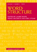Word Structure is an international academic journal covering linguistic morphology and all related disciplines. It is published twice-yearly, in April and October, by Edinburgh University Press and was founded in 2008 under the editorship of Laurie Bauer (Victoria University of Wellington), Heinz Giegerich (University of Edinburgh), and Gregory T. Stump (University of Kentucky). The current editors are Erich Round (University of Surrey and University of Queensland), Andrea Sims (Ohio State University), Peter Arkadiev (University of Potsdam) and Richard Huyghe (University of Fribourg).