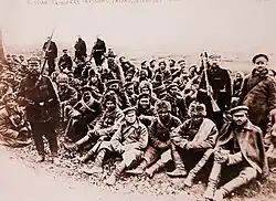 Not all the camps were situated on German territory; a certain number were built in occupied territories, notably in northern and eastern France. They began to be developed starting in 1915 when the number of prisoners being held captive in Germany reached 652,000.[6] According to official directives, each prisoner had to have use of 2.5 m2.[7] The camps mixed a large number of nationalities sharing the same quarters: French, Russian, British, American, Canadian, Belgian, Italian, Romanian, Serbian, Montenegrin, Portuguese and Japanese prisoners were found there, as well as Greeks and Brazilians. Equally, soldiers of various social origins rubbed elbows: workers, peasants, bureaucrats and intellectuals were among those held. The number of prisoners rose very quickly. From February to August 1915, it went from 652,000 to 1,045,232. In August 1916, it reached 1,625,000, jumping to 2,415,000 by October 1918.[8]