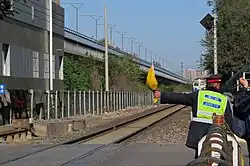 While centrally located along Beijing's Line 13 subway, the 2-lane in each direction Chengfu Lu (Chengfu Road), which runs east–west under an elevated rapid transit line, suffers from severe traffic congestion problems regardless of rush hour primarily because of heavy foot traffic due to subway users, and because it is the only route connecting the Eastern and Western sides of Wudaokou across the railway corridor. Congestion has improved since the under-grounding of the heavy rail line as part of the Beijing–Zhangjiakou intercity railway project, which eliminated the level crossing from which Wudaokou draws its name.