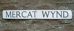 In Scotland and Northern England, a wynd (/waɪnd/) is a narrow lane between houses. The word derives from Old Norse venda ("to turn"), implying a turning off a main street, without implying that it is curved.[1] In fact, most wynds are straight. In many places wynds link streets at different heights and thus are mostly thought of as being ways up or down hills.