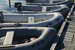 Tenders may be towed behind a yacht, if they are light and towed at a low speed, or lifted on board, if they are heavy enough to cause damage in a collision or when the vessel cruises at too high a speed for towing.[3] The type of tender varies, according to the size of the yacht served, although yachts of all sizes are may have one or more rigid-hulled inflatable boats (RIBs).[4] Yacht tenders like other types of ship's tender, may transport supplies and personnel or be used for the entertainment and pleasure of a yacht's passengers.