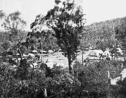 By the end of 1900, the village had a population, reported to vary between 150 and 200 people, and already had three stores, a post office, butcher's and baker's' shop, a news and mining agency, and a bootmaker's shop.[12] Later there was a school, a hotel called the Federal Hotel,[13][14] and an establishment offering billiards and bagatelle.[15] Land was set aside for a police station,[7] but there never would be any police stationed there.[16]