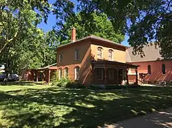 The site of Yankton was occupied by the Yankton Sioux (Dakota) prior to the arrival of European settlers. As part of the vast Louisiana Purchase, the site of Yankton was visited by Lewis and Clark in 1804. In the journals of the expedition, the explorers write of a meeting on August 30, 1804, with members of the Yankton Sioux Tribe on a Missouri River bluff known as Calumet Bluff. As recently as 1857, the site of Yankton was occupied by a village of Yankton Sioux led by Chief Pa-le-ne-a-pa-pe ("Struck by the Ree").[19] Two years later, with the signing of the Yankton Treaty of 1858, the land was opened for settlement.[20] The city was founded where the small Rhine Creek (renamed Marne Creek in World War I) flowed into the Missouri River.[21] The city grew as a stop for steamboats to take on fresh water and supplies, especially after steamboat traffic boomed when gold was discovered in the Black Hills.
