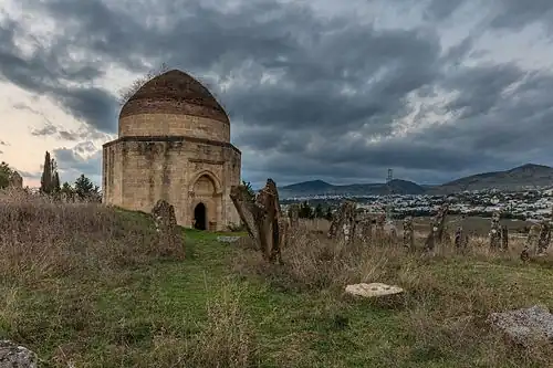 Yeddi Gumbaz Mausoleum – is a cemetery located 1.5 km south to Şamaxı where three mausoleums from “Yeddi Gumbaz” group are still saved. Other mausoleums of the group are partly destroyed and are without cupola or walls. The mausoleum belongs to the beginning of the 18th century. This architectural monument was built for a family of Mustafa khan – the last khan of Shamakhi. The name of the architect – ustad Taghi – is also known as there is an inscription on the mausoleum. The monument belongs to Shirvan-Absheron architectural school.[1]