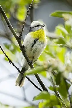The yellow-breasted tit (Cyanistes cyanus flavipectus) is a bird in the family Paridae. It is found in Afghanistan, China, Kazakhstan, Kyrgyzstan, India, Pakistan, Russia, Tajikistan, Turkmenistan, and Uzbekistan. Its natural habitat is temperate forests.