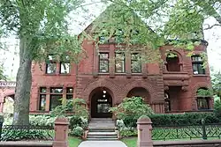 The club's building was originally constructed between 1889 and 1892 as a residence for businessman George Gooderham Sr. (1830–1905) and his large family.[1] Gooderham was a son of William Gooderham (1790–1881) and served as president of the Gooderham and Worts distillery.[2] The house was designed in the Romanesque Revival style by architect David Roberts Jr., who also designed the Gooderham Building downtown.