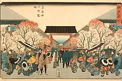 Yoshiwara (吉原) was a famous yūkaku (red-light district) in Edo, present-day Tokyo, Japan. Established in 1617, Yoshiwara was one of three licensed and well-known red-light districts created during the early 17th century by the Tokugawa shogunate, alongside Shimabara in Kyoto in 1640[1] and Shinmachi in Osaka.[1]