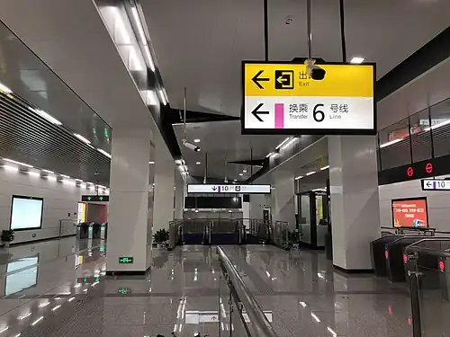 Yuelai Station is an interchange station between Line 10 and International Expo Branch of Line 6 of Chongqing Rail Transit in Chongqing municipality, China.[3] It is located in Yubei District, adjacent to Chongqing International Expo Center and opened in 2013 with the opening of Line 6 International Expo Branch.[1] It had also served as the northern terminus of Line 6 International Expo Branch until Phase II opened in 2020.