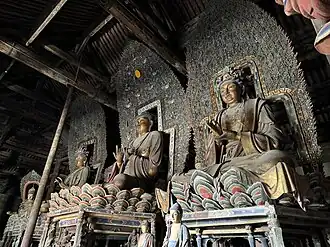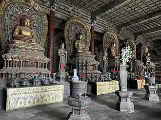 Having invited the enlightened beings, the celebrant performs the rite of manifesting an altar through mudrās and invites the jñānasattva (meaning the true form of a deity as an aspect of enlightenment[31]) associated with Guanyin to enter the daochang. The subsection then closes with the assembly reciting more mantras and quatrains, such as the Thirty-five Confession Buddhas, to the accompaniment of percussion instruments.[18][30]