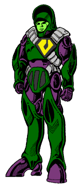 ![]() A "Zentradi" soldier sporting heavy combat armour. The yellow and black Zentradi emblem can be seen in their chest. | |