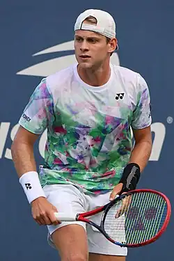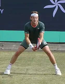 In the beginning of the grass court season he entered the main draw of the Rosmalen Open as a lucky loser and defeated local wildcard Tim van Rijthoven ,[ 46] before losing to top seed Alex de Minaur in the second round.[ 47] He also entered the main draw at the Wimbledon after qualifying but lost to Arthur Cazaux in five sets with a super tiebreaker in the fifth.[ 48] As a result he reached the top 75 in the singles rankings on 15 July 2024.[ 1]