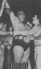 In 1968, Rhodes left Texas and entered the Kansas City territory, tagging with fellow Texan Dick Murdoch to form the tag team The Texas Outlaws.[11][12] The team traveled both nationally and internationally, appearing in Big Time Wrestling (Texas), NWA Western States Sports (Texas), NWA Detroit, National Wrestling Federation (NWF), Championship Wrestling from Florida, World Championship Wrestling (Australia), Tri-State Wrestling, the American Wrestling Association (AWA), and International Wrestling Enterprise (Japan).[4][11][13]