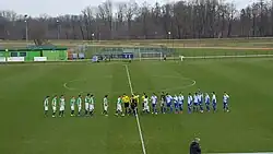 The club established a reserve team in the summer of 2016. Under the management of Nenad Dolgov, the first team topped the league table after the first half of the 2016–17 season; their most notable win being a 4–1 home victory over Slatina on 15 October 2016.[37][38] On 15 November 2016, Nenad Dolgov left his job as head coach of the club for personal reasons, though he stayed as head coach of the under-10 selection.[39] He was replaced by Boris Lazić who signed a three-year contract on 8 December 2016.[40] In the 2016–17 MNZ Cup, the team eliminated Mura Veterani, Šalovci and Grad, before being eliminated in the semi-finals by the third division side Beltinci 3–0 on 17 May 2017.[41] On 21 May 2017, Radgona visited the league leaders Hodoš, who won the match with a goal scored in the 90th minute and were crowned champions of the league.[42] The club finished the 2016–17 season in third place with 42 points.[43] During the season, Radgona secured one of the biggest-ever home wins, when they defeated Ižakovci 9–0.[44] On 6 June 2017, the club received the official invitation to participate in the Third Division for the next season after league winners Hodoš declined promotion.[45] On 9 June 2017, the club accepted the invitation and was effectively promoted to the third tier for the second time in the club's history.[46]