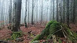 The Jelení bučina Nature Reserve[34] is located at an altitude of 712–930 meters above sea level on the slope of the mountain and extends from the valley of the Middle Opava stream towards the road Zámecká cesta and has an area of 45.84 hectares[35] and 14.07 hectares (in addition) of a 50-meter wide buffer zone.[36][3]