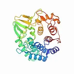 - ^ Attigani A, Sun L, Wang Q, Liu Y, Bai D, Li S, Huang X (December 2016). "The crystal structure of the endoglucanase Cel10, a family 8 glycosyl hydrolase from Klebsiella pneumoniae". Acta Crystallographica. Section F, Structural Biology Communications. 72 (Pt 12): 870–876. Bibcode:2016AcCrF..72..870A. doi:10.1107/S2053230X16017891. PMC 5137463. PMID 27917834.