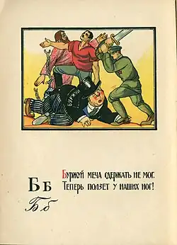 Be (Б б; italics: Б б) is a letter of the Cyrillic script. It commonly represents the voiced bilabial plosive /b/, like the English pronunciation of ⟨b⟩ in "ball". It should not be confused with the Cyrillic letter Ve (В в), which is shaped like Latin capital letter B but represents the voiced labiodental fricative /v/ or the voiced bilabial fricative /β/. The Cyrillic letter Б (Be) is romanized using the Latin letter B.