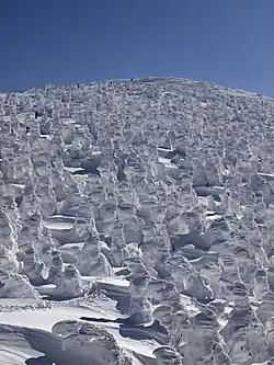 Mount Zaō is a famous winter ski resort, also known for its snow monsters (frozen snow-covered trees) in the winter, and the Okama crater lake, also known as the Goshiki Numa (Five Color Lake) because its colour changes according to the weather.
