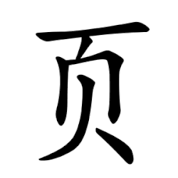 頁 (U+9801) "leaf, head, sheet, page" | ||