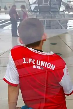 Early on, the team was nicknamed "Schlosserjungs" (English: metalworker-boys) because of their then all blue kit, reminiscent of the typical work clothing worn in the factories of the industrial Oberschöneweide district. The popular cry of Union supporters – "Eisern Union!" (Iron Union) – also emerged at this time.[11] Since its foundation the club has had a distinct working-class image, in contrast to other local clubs with more middle-class origins, such as Viktoria 89 Berlin, Blau-Weiß 90 Berlin, BSV 92 Berlin or Tennis Borussia Berlin.