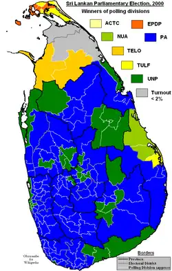 - ^ "Parliamentary General Election 2000 – All Island Result Composition of Parliament". Department of Elections, Sri Lanka. Archived from the original on 2010-08-26. Retrieved 12 September 2010.