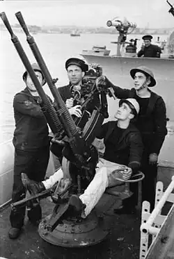 Early in World War II, the French, Italian and Japanese navies were using twin (CAD Mle 1929 - Contre Avions Double) and quadruple (CAQ mle 1929 - Contre Avions Quadruple) mountings on many of their warships. French warships that were refitted in the United States in 1943, such as the battleship Richelieu or the destroyer Le Terrible, had their 13.2 mm machine guns replaced by more powerful Oerlikon 20 mm cannons.