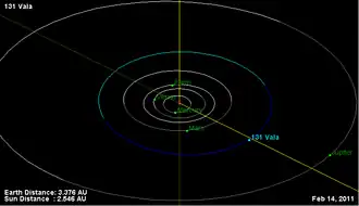 - ^ a b c d e f g "JPL Small-Body Database Browser: 131 Vala" (2011-10-20 last obs (arc=138 years)). Jet Propulsion Laboratory. Retrieved 12 May 2016.