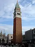 The original structure is a 39-story tower without any setbacks, composed of 32 stories topped by a seven-story roof.[30] The concept behind the original structure's design was to place a pyramidal roof, similar to that of the Mausoleum of Halicarnassus, on top of a tower like Venice's St Mark's Campanile bell tower.[14][31] Trowbridge wanted to enhance "the beauty of the upper part of building by a loggia and a stone pyramid, in place of the usual flat or mansard roof."[14][32] This was one of the first times a pyramidal roof had been used in a skyscraper (after only the Metropolitan Life Insurance Company Tower);[33] previous tall structures had been capped by a cupola, spire, or tempietto.[34]