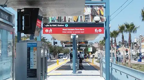 17th Street/SMC station is an at-grade light rail station in the Los Angeles Metro Rail system located near the intersection of 17th Street and Colorado Avenue in Santa Monica, California. It is located 0.6 miles northwest from Santa Monica College (SMC), for which the station is named. It is served by the E Line.[6]
