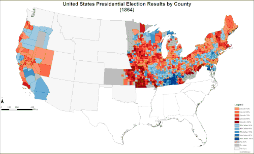 1864 United States Presidential Election mapped by Counties -