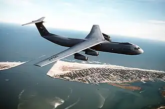 ![]() A C-141 Starlifter of the 438th Airlift Wing flying over the northern New Jersey coastline near McGuire AFB[note 1] | |