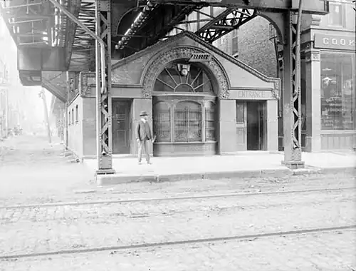 The South Side Elevated Railroad, the first rapid transit company in Chicago, opened on June 6, 1892, with ten stations, one of which was located on 18th Street. Eight of the ten stations on the line were built with street-level station houses.[a][3]