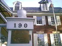 - Colonial New England, in the red brick facade and symmetric white picket fence.