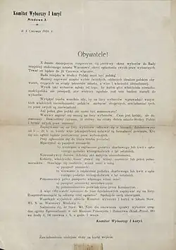 - ^ Przed wyborami do rady miejskiej in Kurjer Warszawski, June 6, 1916. p. 4