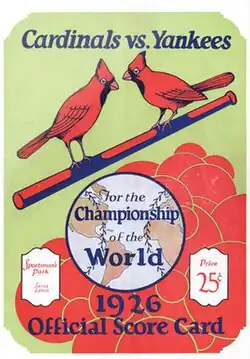 The 1926 World Series was the championship series of the 1926 Major League Baseball season. The 23rd edition of the Series, it pitted the National League champion St. Louis Cardinals against the American League champion New York Yankees. The Cardinals defeated the Yankees four games to three in the best-of-seven series, which took place from October 2 to 10, 1926, at Yankee Stadium and Sportsman's Park.