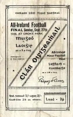 - ^ "1936 All Ireland Senior Football Final - Laois v Mayo" – via www.youtube.com.