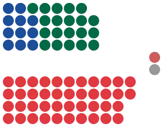 | Party | Primary vote | Seats | |||||||