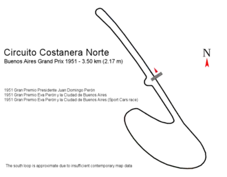 The third of three 1951 Buenos Aires Grand Prix (official name: Gran Premio de Eva Duarte Perón - Sport) was a Sports Car Grand Prix motor race (over 1500cc S+1.5) that took place on March 18, 1951, at the Costanero Norte circuit in Buenos Aires, Argentina. The race was also known as the "Buenos Aires National" and was part of the Argentine Nationals racing series.[1][2][3]