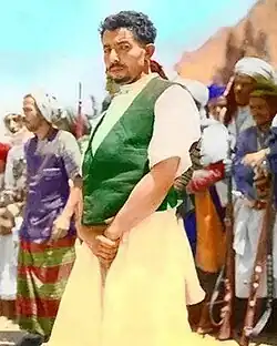 Al-Thulaya insisted the Imam abdicate in favor of his half-brother Abdullah, the foreign minister.[3] Imam Ahmad agreed, but secretly began to buy off the rebellious soldiers, reducing their numbers from 600 to 40 over the course of five days. (Other sources claim the number of soldiers surrounding the palace was 1,300.)[2] He then burst out of the palace wielding a scimitar, killing two men before retreating to the palace. Swapping the sword for a submachine gun, he led his guards in an attack against the remaining soldiers. Twenty-three rebels and one palace guard were killed, and both Abdullah and al-Thulaya attempted to flee. The latter tried to escape to Aden, which was under British rule, but was captured by tribal forces loyal to the Imam in the village of al-Wazzam, and was returned to Taiz.[3][4]