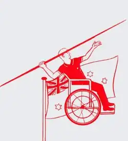 The flag was the games emblem of a javelin thrower in a wheelchair with a background outline of the flag of Australia on a flagpole in a slight breeze.[1] Medals had one side with the games emblem and the reverse side name of sport with room for engraving. Badges were given to each competitor and official with the aims of identification and access to the dining hall.[1] The badge also became a memento of the games.[1]